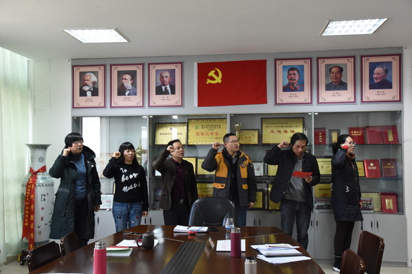 首先,余文富聚焦《党章》中关于党员权利和义务、党的纪律章节进行了集体学习。接着,在座的党员面向党旗、举起右手重温了入党誓词。