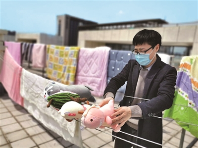 “女生们的被子比较轻,但数量真不少,我对接的一个宿舍就有将近20条被子,从二楼到楼顶扛了4趟才搬完。”汪红林老师擦着汗说,“这些被子被闷了一个冬天,都受潮了,趁阳光好晒一晒,可以让返校的学生们睡得更舒服。”
