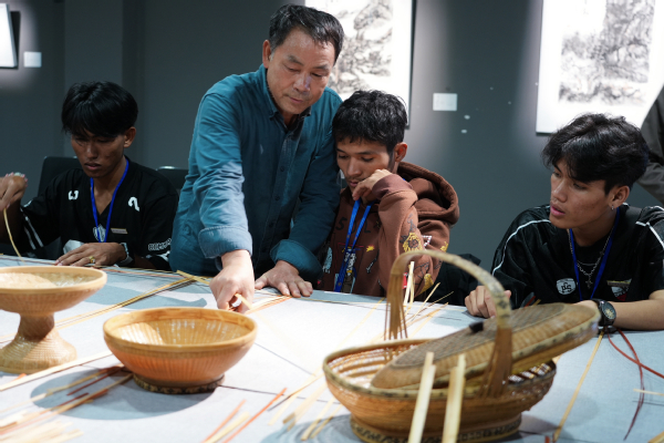 毛春良拿起一根竹条说:“同学们,竹编在中国有悠久的历史,每一根竹条都蕴含着我们祖先的智慧。”毛春良手中的竹条在灵巧地翻转、穿梭,一会儿工夫,一个精巧的竹编图案就初现雏形。留学生们目不转睛地看着,几位留学生凑上前去,仔细观察这神奇技艺。