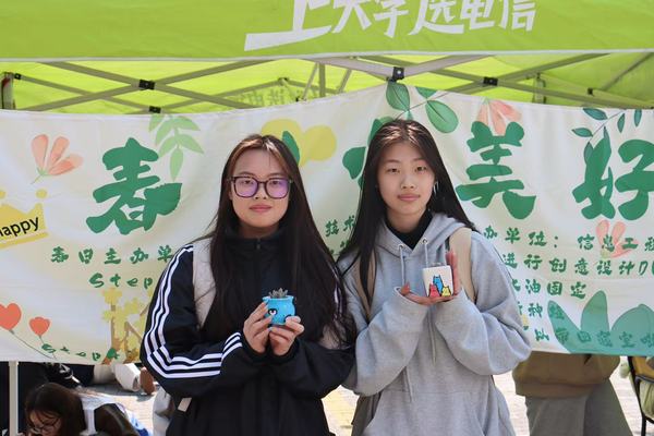 在学生干部的引导下,同学们以素坯花盆为画布,运用丙烯颜料绘制出各具匠心的图案:有的以传统水墨描绘江南春色,有的用几何线条勾勒现代美学,还有的将励志格言融入植物造景,展现出艺术创意与生态理念的深度融合