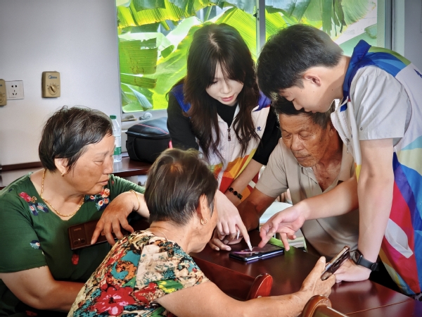 在AI技术体验环节,师生志愿者们耐心引导老年村民体验 AI 绘画、AI 语音助手等前沿科技应用。面对新奇的数字产品,老人们充满好奇,在志愿者的帮助下,亲手操作体验,感受科技带来的乐趣与便利。一位参与体验的老人感慨道:“这些新技术太有意思了,让我们也能跟上时代的步伐!”此次体验不仅丰富了老年村民的精神文化生活,更让他们感受到了数字时代的魅力。