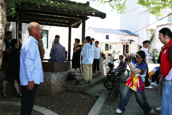 活动以“数字赋能”为核心,党员师生们充分发挥专业特长,为泉井边村村民带来了一场别开生面的数字技能学习盛宴。在《手机短视频拍摄与制作》场景教学中,艺术设计学院第二党支部书记何敬带领师生党员志愿者们,深入浅出地讲解短视频拍摄的构图技巧、运镜方式和剪辑方法。通过现场演示和一对一指导,帮助村民掌握用手机记录生活、宣传家乡的技能,为乡村旅游宣传提供了新的思路与方法,切实将数字技术转化为乡村发展的新动能。